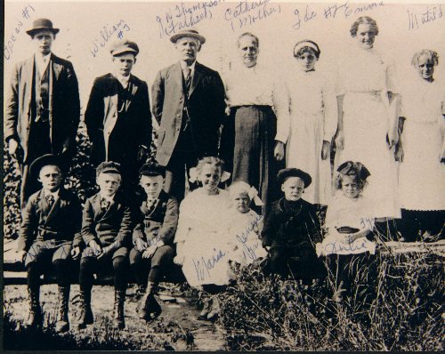 This is the "original" Thompson family in 1910. From Left to Right: Back: Oscar, William, John (Father), Catherine (Mother), Ida, Emma, Matilda. Front: Henry, Elmer, Charlie, Maria, Jennie, Victor, Julie.